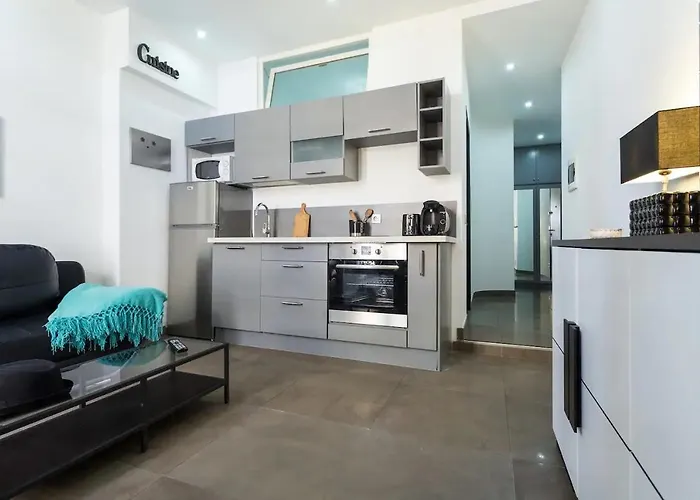 Lägenheten ligger inom 2 km från Slottskullen, medan Cap Ferrat fyr ligger ungefär 7 km bort. Det tar 10 minuter till fots till Nices centrum. Musée d'Art Moderne Et d'Art Contemporain ligger också i närheten av den här lägenheten.